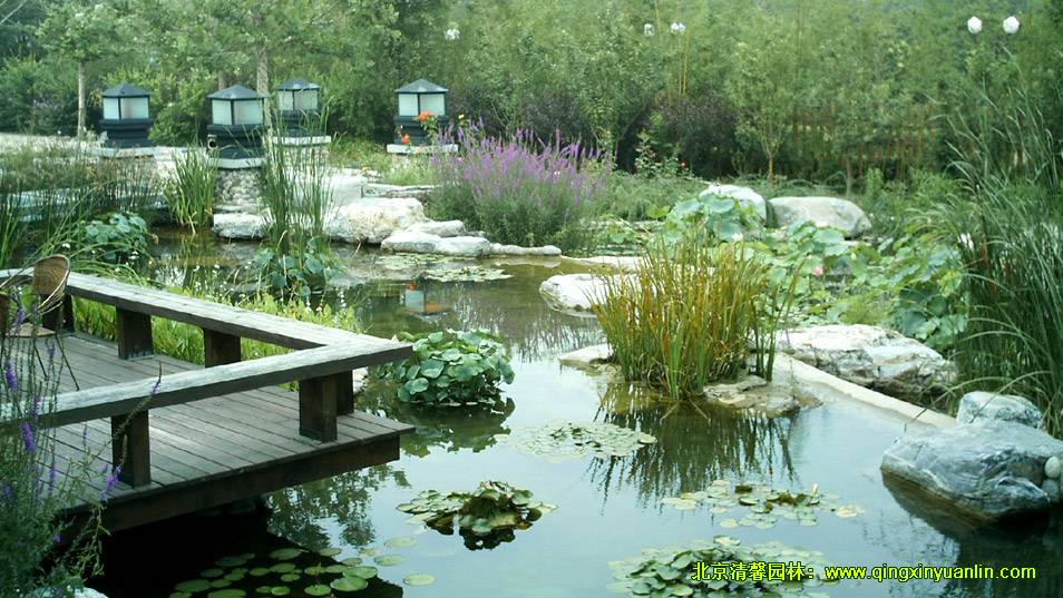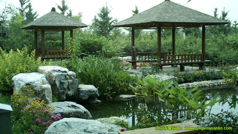 該項(xiàng)目位于北京市海淀區(qū)四季青鎮(zhèn),總面積16000 m2,工程內(nèi)容:水池、建筑小品、假山駁岸、園路鋪裝、停車(chē)場(chǎng)、地形整理、植物種植、給排水、燈光照明等。木屋坐落在起伏的綠地中,屋邊水系蜿蜒,水流潺潺,不管是沿著屋邊木棧道漫步,還是坐在水邊木亭內(nèi)品茗,都可領(lǐng)略到周邊精心營(yíng)造的美景,讓人有一種置身山清水秀的自然美景中的舒暢感覺(jué)。
