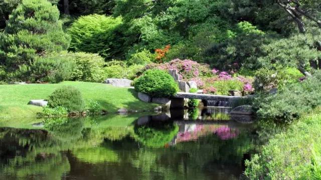 •   美國阿斯蒂庫杜鵑花園原建于1956年,由小洛克菲勒資助建立,免費(fèi)向游人開放?;▓@的設(shè)計(jì)者Charles Savage是本地居民,喜愛日本花園,建這個(gè)花園時(shí)格外注意把自然和人工的建筑巧妙搭配在