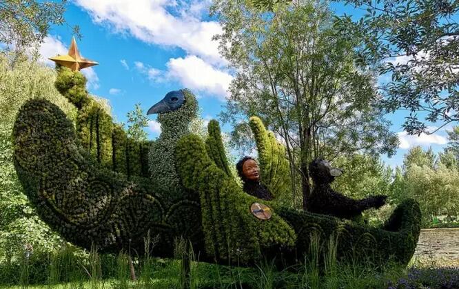 如今,在現(xiàn)實(shí)世界中的某個(gè)地方——加拿大蒙特利市重現(xiàn)了這繽紛的一幕。這次立體花壇展覽是場十分浩大的工程,作品耗費(fèi)200名藝術(shù)家的心血,用300萬株植物和花朵制作而成,滿目鮮綠。