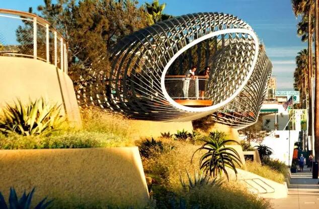公園內(nèi)最吸引人注意的是造型新穎的觀景平臺,它離地平面約18英尺,曲線形的網(wǎng)狀涼亭像一個編織的橢圓形籃子。人們可站在原木打造的平臺上,俯瞰一望無際的太平洋、圣莫尼卡碼頭上的摩天輪與海灘上的熱鬧人群。此外,公園還設(shè)有野餐區(qū)與兒童游樂區(qū),是家庭周末放松出游的好去處。
