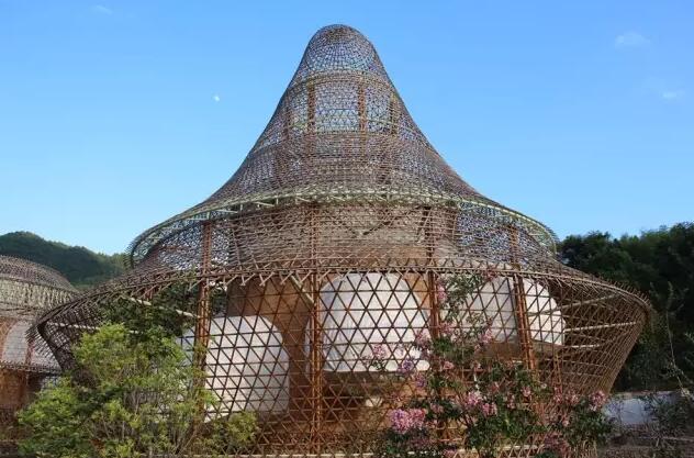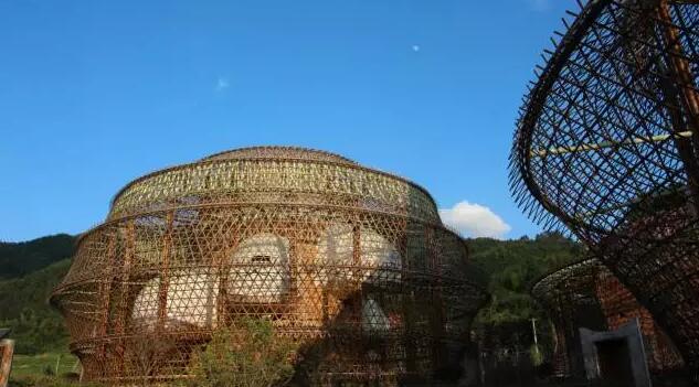 建筑的中間是夯土墻建造的主體,外部用竹子勾勒出樣子。