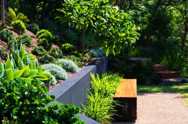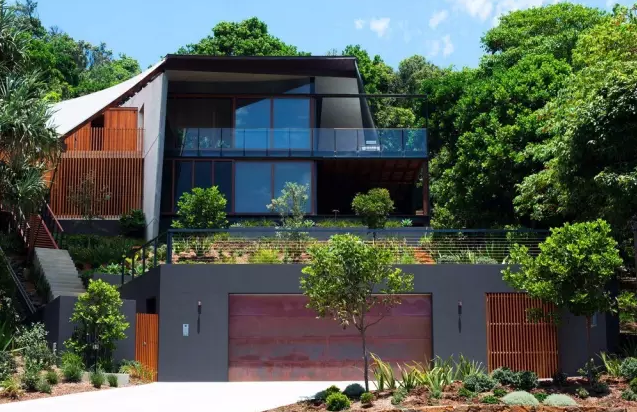 飛翼住宅景觀項目住宅位于Wategos Byron海灣后面的一座小山丘上,該住宅地理位置優(yōu)越,有一種居高臨下的氣勢。居民在住宅里便可以俯瞰整個Julian礁石區(qū)的美景。場地中坡道很陡,房屋就坐落在一條街區(qū)的后方,為了使住宅入口處得以美化,該設(shè)計團(tuán)隊在入口區(qū)建立了一個花園,這樣布局后,住宅房屋就與場地中的各個景觀聯(lián)系起來了,并且可以從住宅直接望向海邊,加深了視覺感受?;▓@的結(jié)構(gòu)設(shè)計很有特點,設(shè)計團(tuán)隊特意選用了當(dāng)?shù)氐奶烊徊牧蟻斫ㄔ欤耘嗟闹参锓N類與周邊自然環(huán)境的結(jié)合力非常強(qiáng),而且保養(yǎng)費用低,非常經(jīng)濟(jì)。