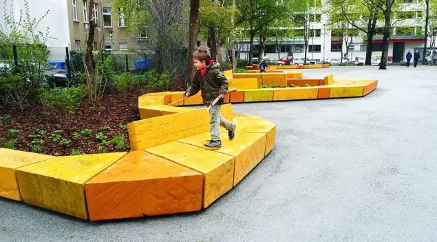 柏林KALA游樂場和綠色空間景觀設(shè)計(jì)項(xiàng)目位于一個(gè)公共城市廣場,旨在通過增強(qiáng)公民意識(shí)和自由意識(shí)促進(jìn)兒童活動(dòng)。該項(xiàng)目的關(guān)鍵詞是:形式和空間簡單化。項(xiàng)目空間分為兩個(gè)不同的區(qū)域,分別適用于老人和孩子。Meeresinsel(海島),一個(gè)帶有自然游樂區(qū)域的游樂場,可激發(fā)孩子們的創(chuàng)造性;Erdeninsel(地島),一個(gè)城市裝置設(shè)計(jì),五彩、有趣且智能。