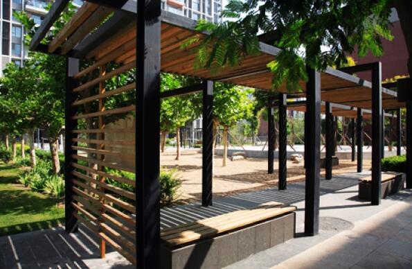 北京北緯40°住宅小區(qū)位于北京朝陽區(qū),項(xiàng)目的名稱來自于其位置與緯度線。HASSELL受托為此13.8公頃地塊以及一旁的11.8公頃“公共綠化公園”進(jìn)行景觀設(shè)計(jì)。景觀主軸由5個(gè)主題住宅花園構(gòu)成。項(xiàng)目應(yīng)用了串連景觀藝術(shù)元素將這些花園連接起來。由于項(xiàng)目的所在地是北京,當(dāng)?shù)貙τ盟坑兴拗?,因此?xiàng)目的另一特點(diǎn)就是水源的高效使用。從長遠(yuǎn)來看,這一獨(dú)特設(shè)計(jì)不僅環(huán)保,還為住戶節(jié)約用水量。